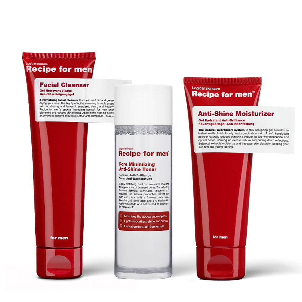 Anti-Shine Moisturizer är en fuktighetsgivande gel som reducerar överskottsolja på huden och motverkar glansighet – perfekt för killar som tenderar att bli oljiga i t-zonen och få “blank” panna, men ändå behöver mycket fukt. Innehåller Recipe for men’s signaturingrediens Micropearl, ett fint naturligt dubbelverkande puder som suger upp överskottsolja på huden samtidigt som det dämpar reflektioner. Resultatet är återfuktad och glansfri hy med en snygg matt lyster.