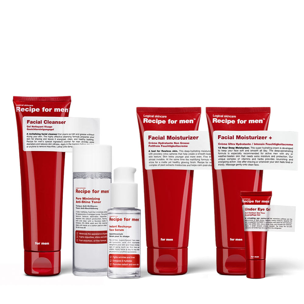 Upprepa rutinen dagligen för bästa resultat. Går bra att komplettera med övriga Recipe for men produkter.
