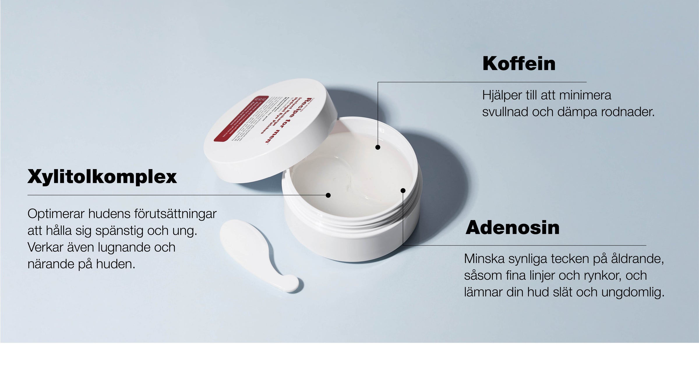 Instant Recharge Hydrogel Eye Patches: Används på ren och torr hud. Placera en mask under varje öga och låt verka 20-30 minuter. Burken innehåller mycket formulering för att du ska få bästa effekt, men om du upplever att de glider på huden kan du skaka av dem något innan du placerar dem. Följ upp med serum och ansiktskräm.