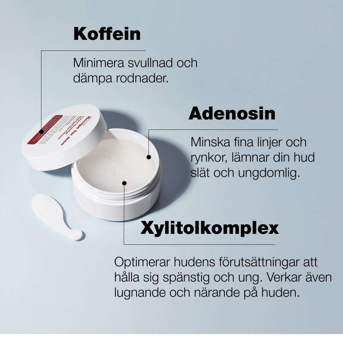 Båda produkterna bör förvaras i kylen för en extra uppiggande och svalkande effekt. De går även att användas samtidigt – lägg på eye patches och applicera masken runt om. Låt båda produkterna verka i ca 20 min och skölj sedan av.